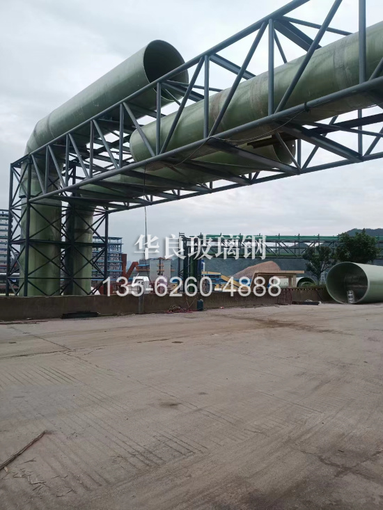 由于很多烟囱的工作温度较高(一般为50~180℃),烟气成分复杂,一般树脂不能满足其要求,所以选择内衬树脂及结构层树脂的关键是能否满足在高温情况下的腐蚀要求,结构层树脂选材也需适应耐高温要求,还需考虑结构树脂的断裂延伸率与内衬树脂的断裂延伸率相匹配。考虑到安装的方便性,我们根据客户安装要求,将烟囱进行分段加工,然后在现场组装;也可根据客户的意愿来设计安装工艺。